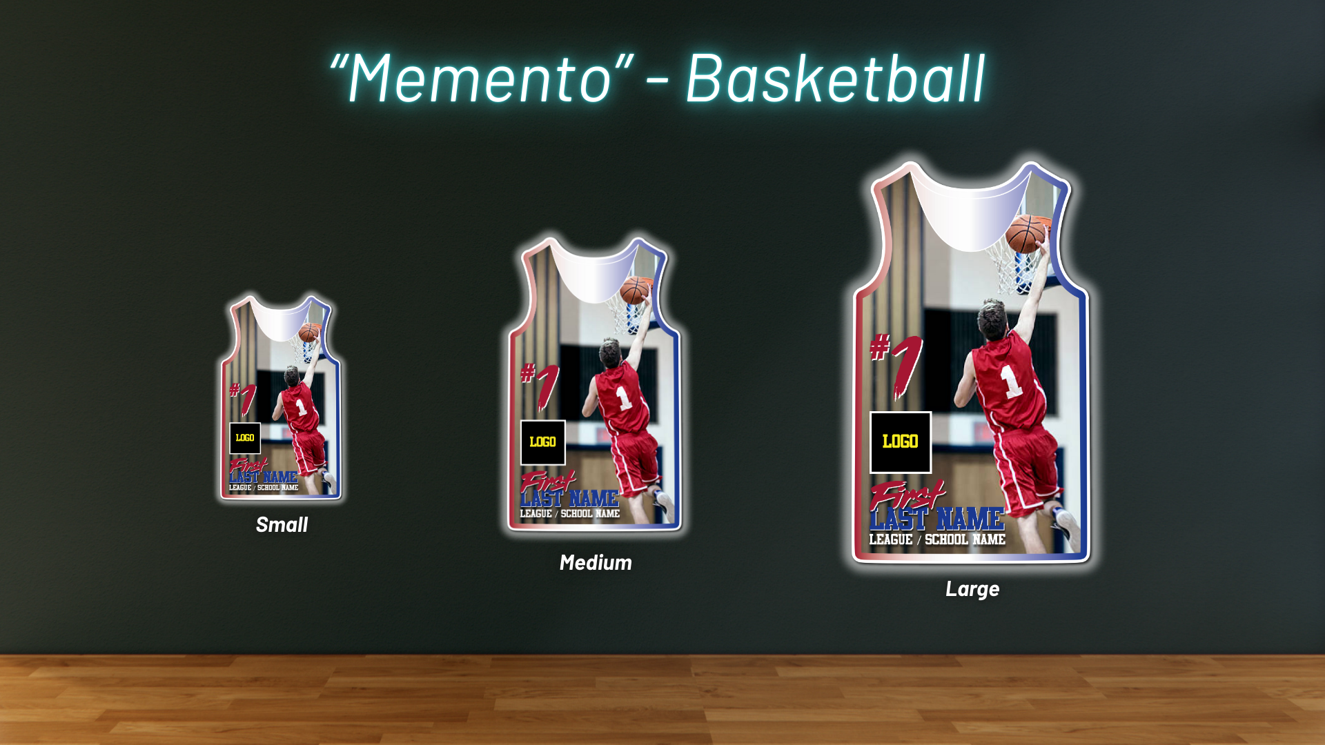 Celebrate your highlights with a basketball Memento, showcasing an action shot, name, and number with a sleek basketball-inspired design.