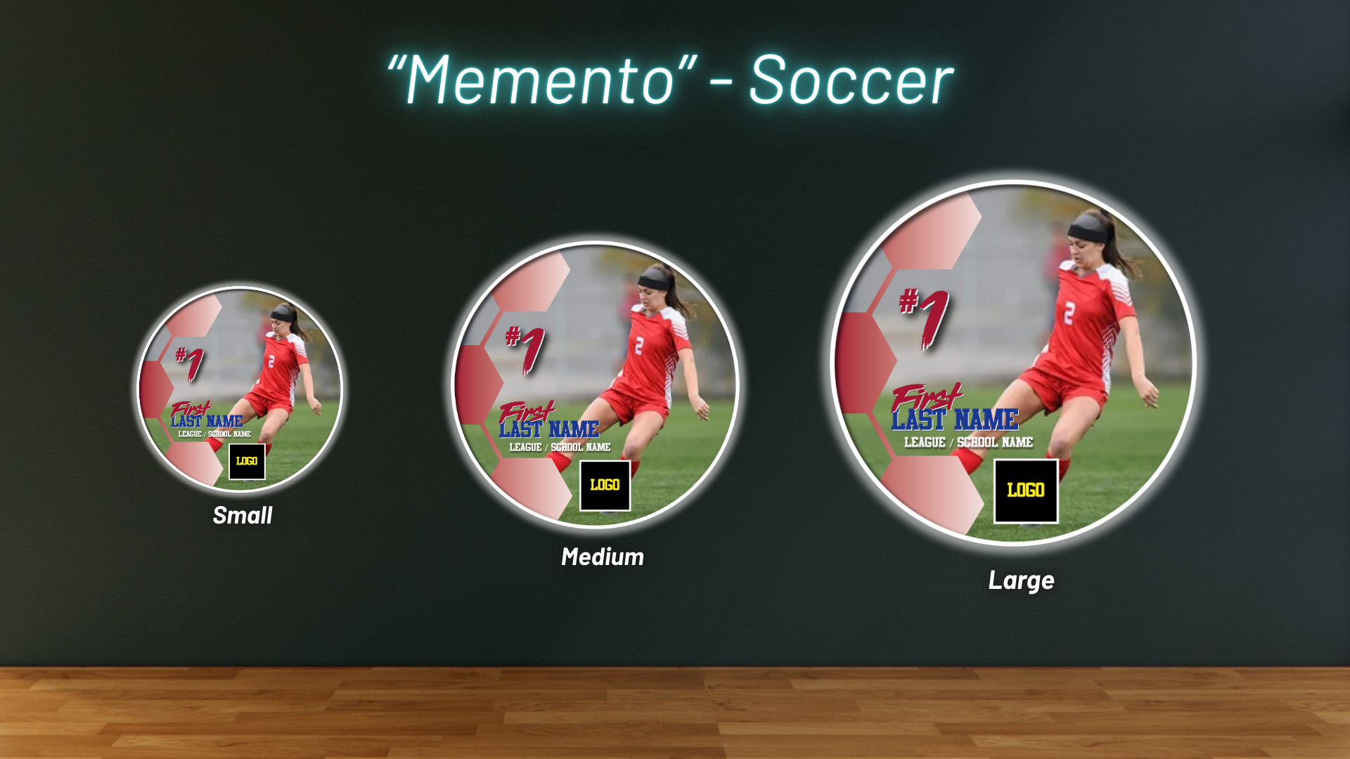 Capture your passion with a soccer Memento, displaying an action shot, name, and number on a vibrant soccer-inspired design.