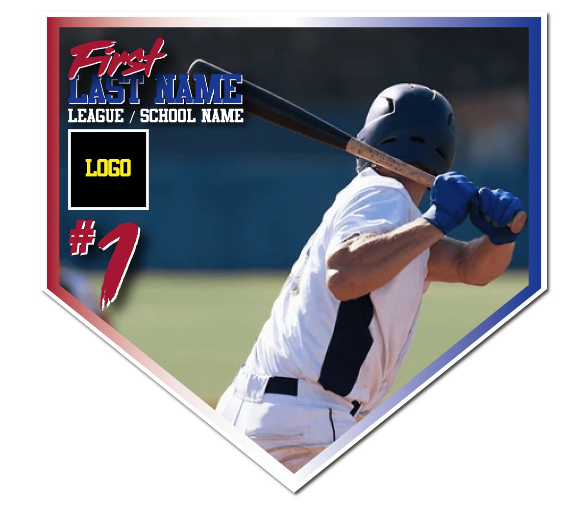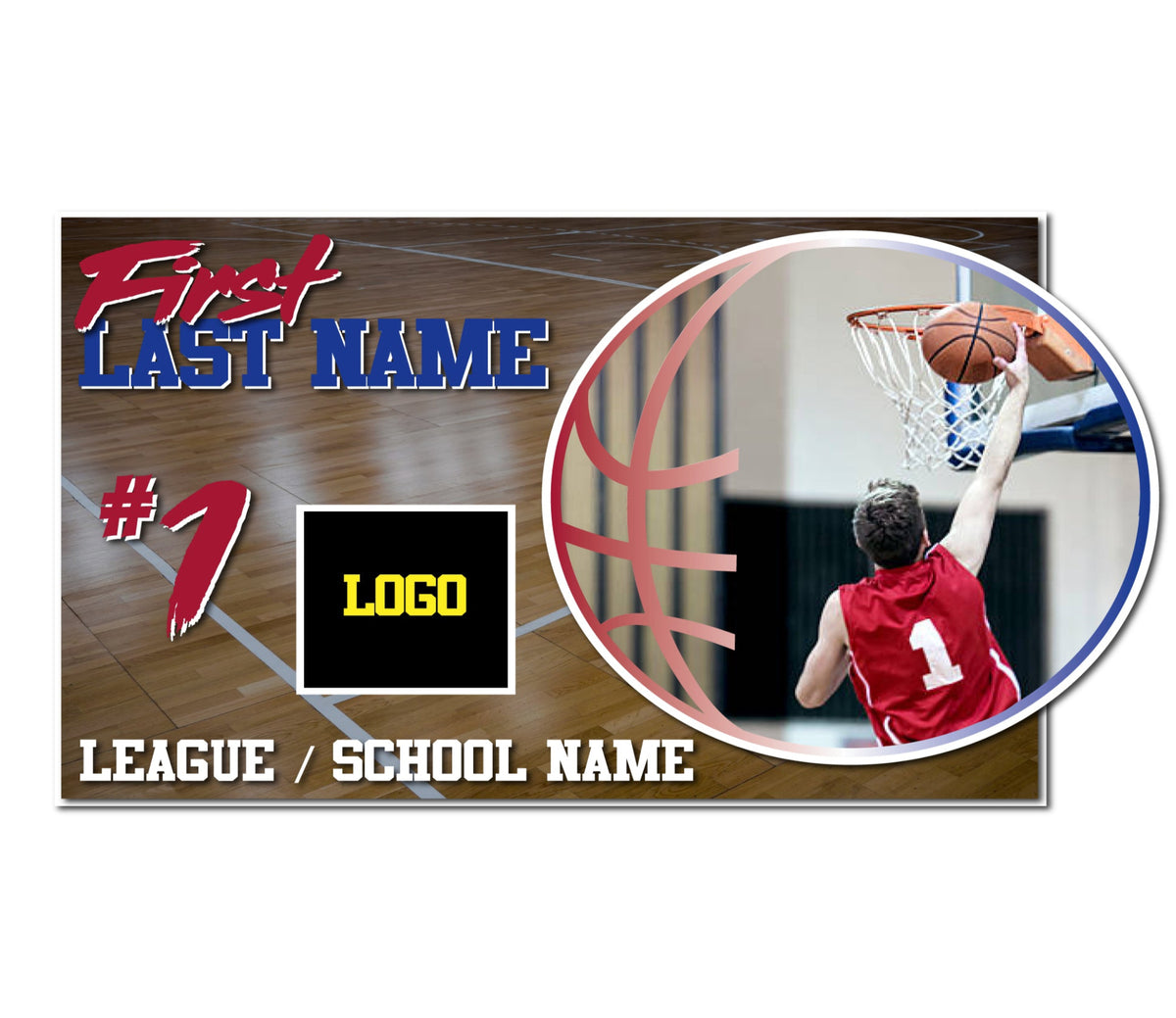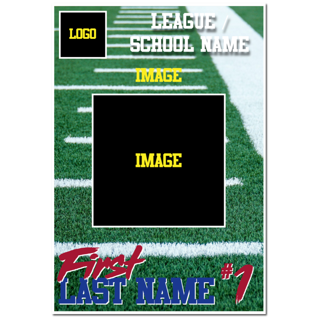 This modern, customizable design features your athlete’s headshot or action shot along with a sport-themed backdrop, inside a choice of shapes, with personalized details including name, number, and school logo.