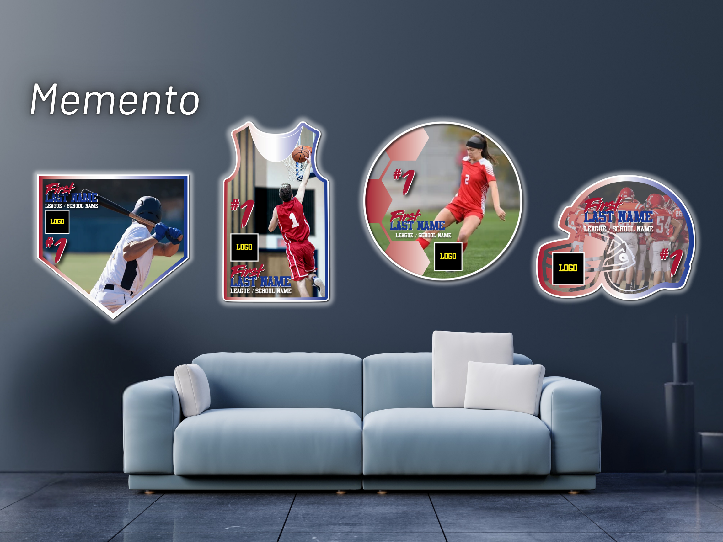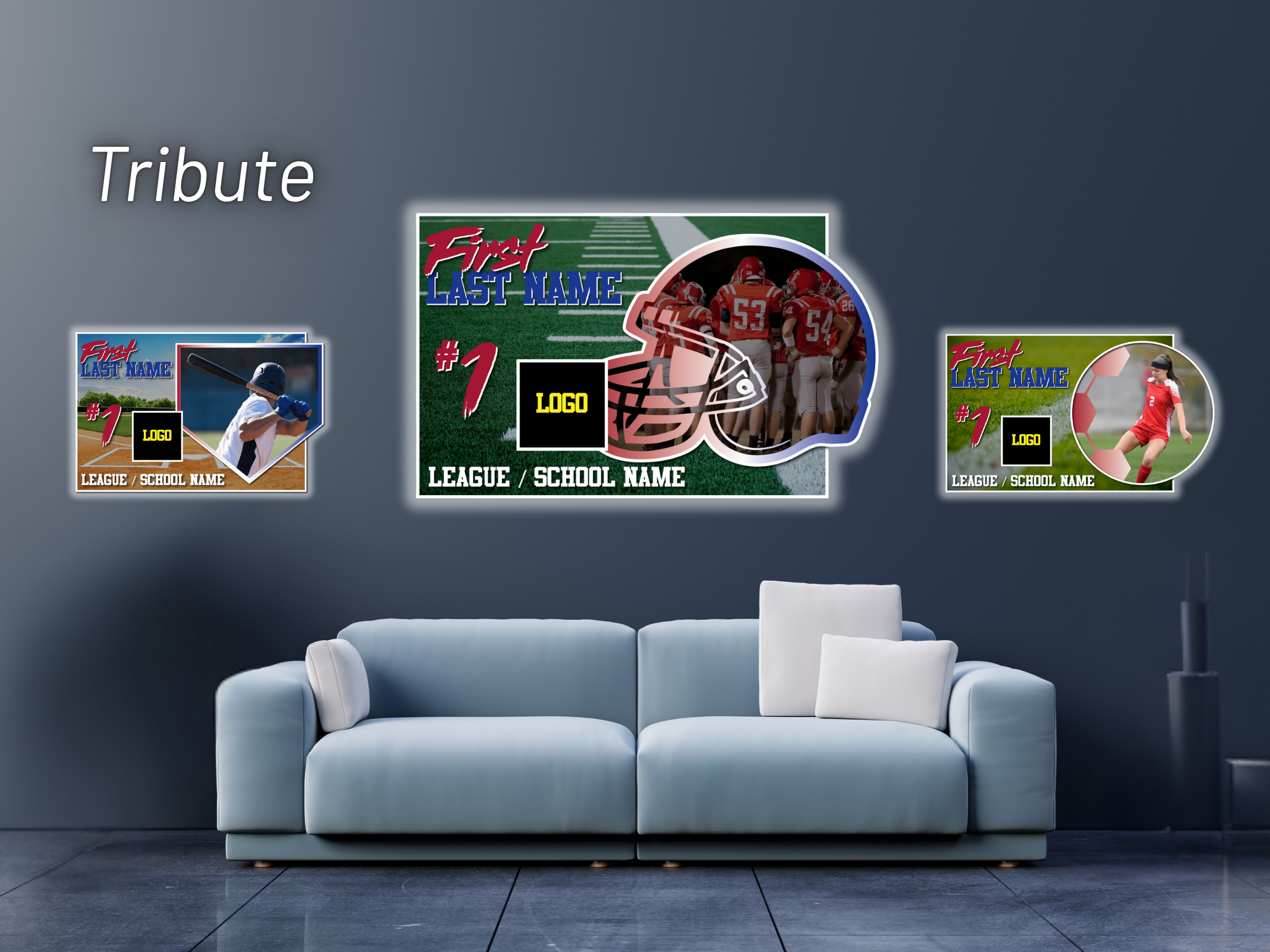 A dynamic, sports-themed wall art that frames your athlete's photo with personalized text, making it a lasting memory of their achievements.